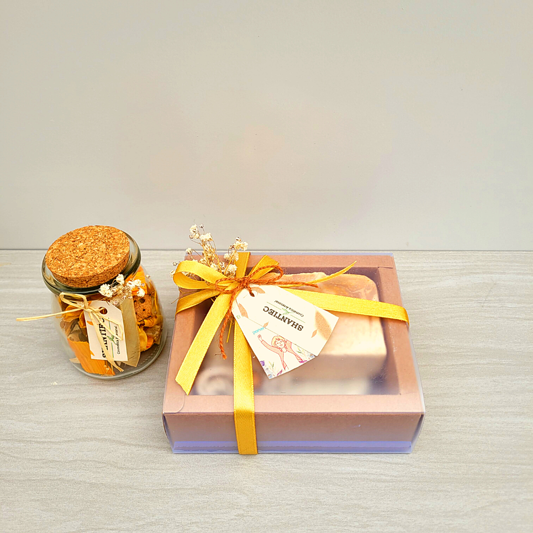 Regálate un momento de bienestar con nuestro Kit de Limpieza Natural, diseñado para limpiar, exfoliar y nutrir tu piel de manera suave y efectiva. Contiene un jabón vegetal a elección y una fundita exfoliante de sisal, todo presentado en una envoltura especial que lo convierte en el regalo perfecto para ti o alguien especial.